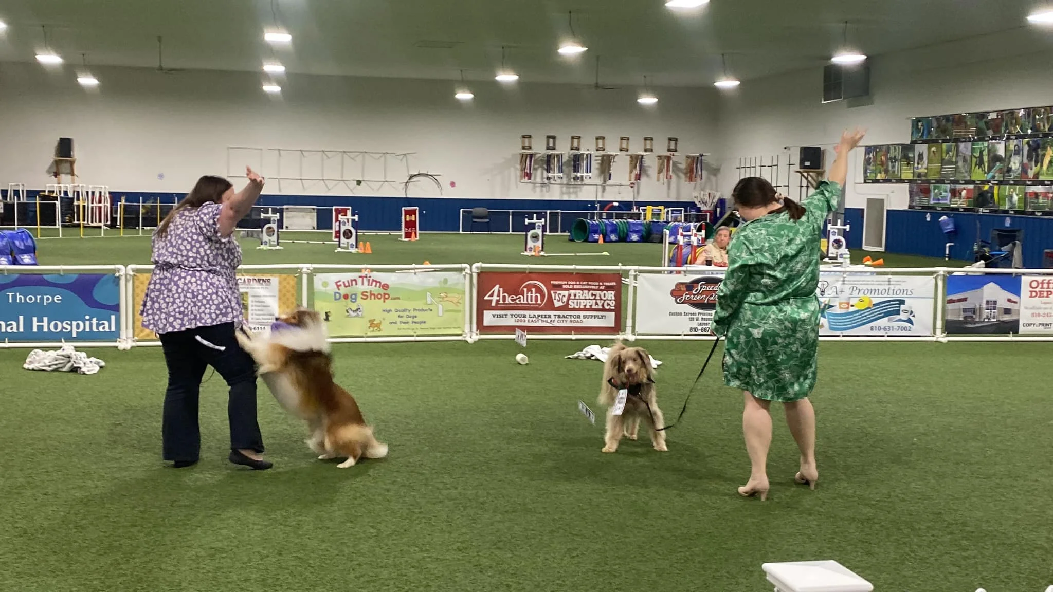 As they say, time changes everything. Nine years later, that original club I joined when first dipping my toes into the world of freestyle is no longer around… and heartbreakingly, neither is Ashley. But even difficult changes have brought new connections, and I’ve continued to find new ways to learn and grow in my freestyle journey. There are so many experiences I never would’ve had and people I never would’ve crossed paths with had it not been for freestyle and Ashley’s enthusiasm to share her love of this sport. Over the years, I’ve been proud to bring new friends into the fold, sharing the adventure of dog dancing with them and branching into new areas with pair, group, and brace routines. I’ve had family and friends come to watch us, and I’ve taken part in non-competition performances solely to bring joy to others at public events and retirement centers. And I’ve had the simple yet incredible privilege of being moved by countless performances in between my own: laughing at a trick cleverly integrated into a routine, smiling at the sheer delight of a dog performing their favorite behavior, getting full body chills watching a judge and her beloved dog heel with impeccable precision, tearing up watching a student perform to the Golden Girl’s theme song with her senior dog at their one and only show, and crying watching Ashley’s dog dance beautifully with his wonderful new owner at the nationals event. I had always hoped that musical freestyle would bring more joy to my training and deepen my bond with my dogs, but I never imagined how it would connect me to the human experience of shared emotion and being a part of a community.