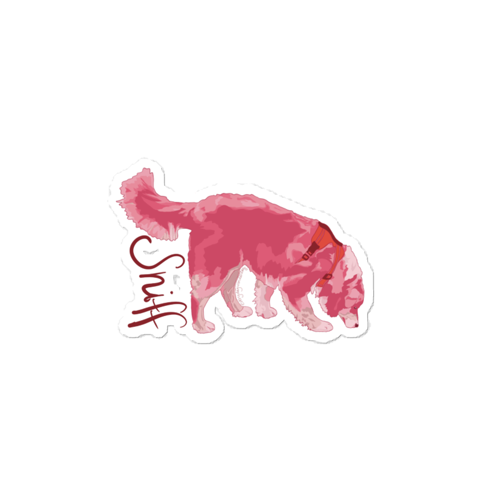 Showcase your love for Nosework with this 'Sniff' sticker featuring Amos the Australian Shepherd! I enjoy creating these portraits of my students in my free time, and each design takes approximately 5 hours to draw. This purchase shows your support for authentic, human-created art in a time when AI art is everywhere - thank you for supporting my art and small business!